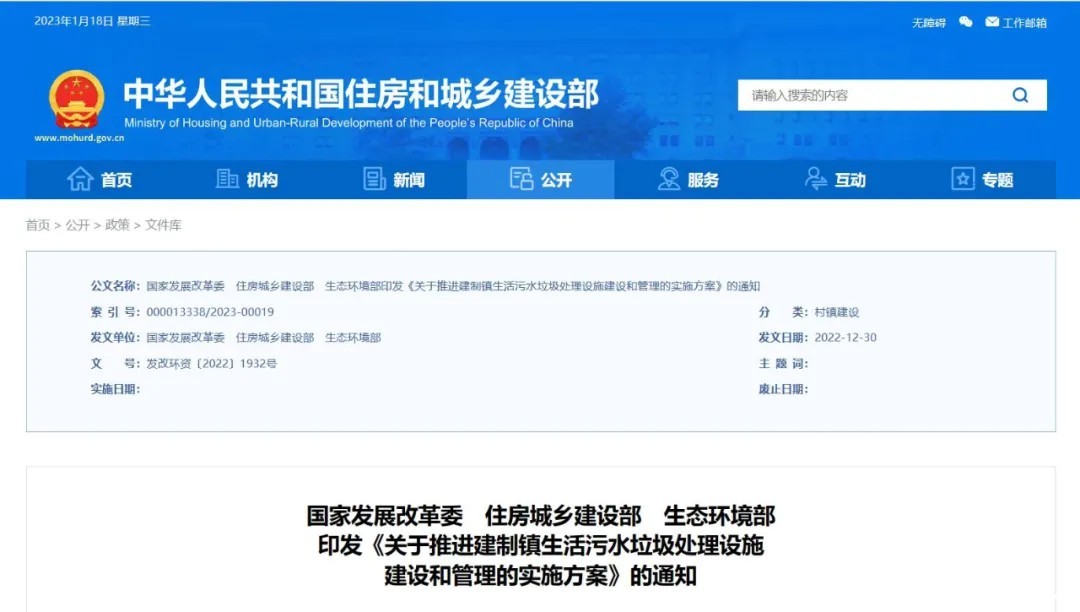 建制镇是我国城镇体系的重要组成部分,是建设美丽中国的重要载体。为深入贯彻落实党的二十大精神,提升建制镇生活污水垃圾处理设施等环境基础设施能力和水平,持续改善人居环境,国家发展改革委、住房和城乡建设部、生态环境部共同印发了《关于推进建制镇生活污水垃圾处理设施建设和管理的实施方案》(以下简称方案)。