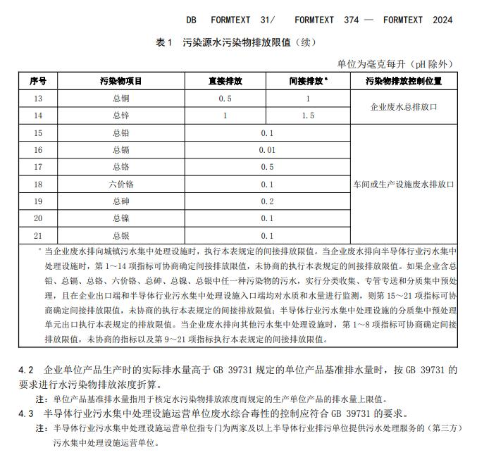 经上海市人民政府批准,《半导体行业污染物排放标准》(DB31/374-2024)为上海市地方污染物排放标准,现予以发布。2024年5月1日起实施。