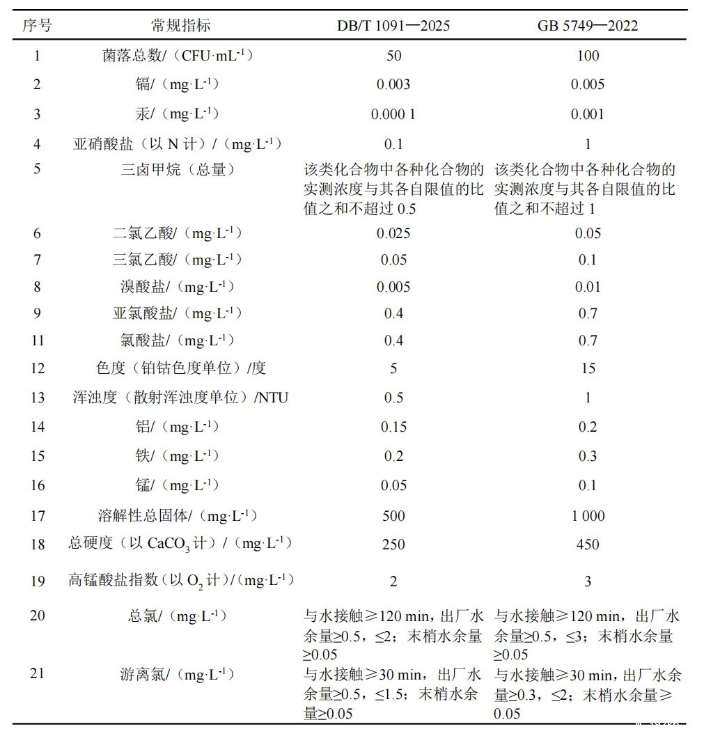 (2)更加关注处理工艺效果。标准创新性地要求水厂出厂水浑浊度宜控制在0.1 NTU以下,针对氯胺消毒和混凝剂种类并结合近年来的检测数据,要求从严控制铝、亚硝酸盐(以氮计)和含氮消毒副产物亚硝基二甲胺等直接受水厂处理工艺影响的水质指标。