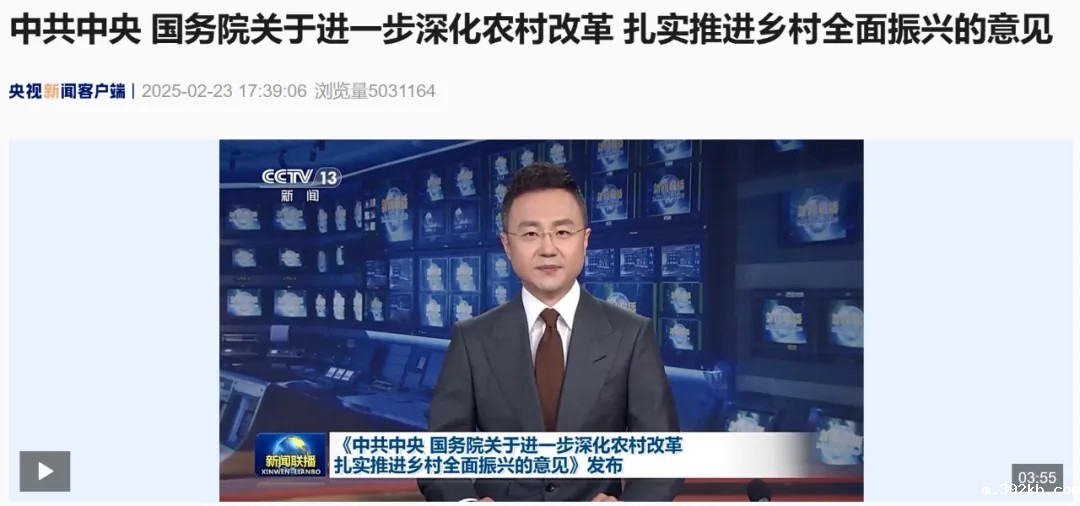 223日,《中共中央 国务院关于进一步深化农村改革 扎实推进乡村全面振兴的意见》(以下简称《意见》)即2025年中央1号文件发布。